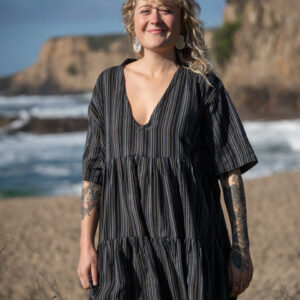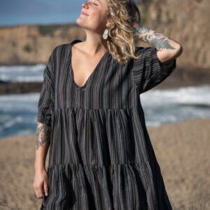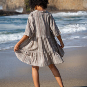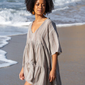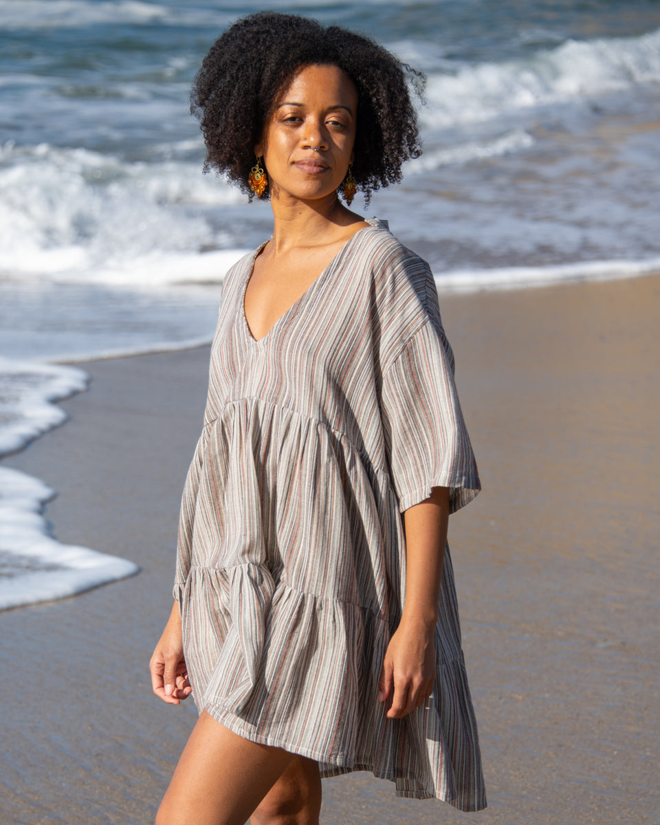 This two-tier babydoll dress is crafted from our beloved striped ‘Kurta Cotton’ and can also be worn as a tunic. It features lightweight, flowy cotton, a V-neck with a standing collar, and short sleeves for an easy, relaxed look.