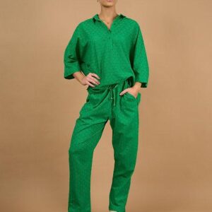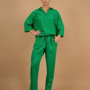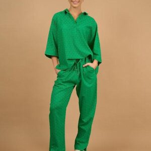 Collectivo – Scarlett Taperred Pants – Green Schiffli