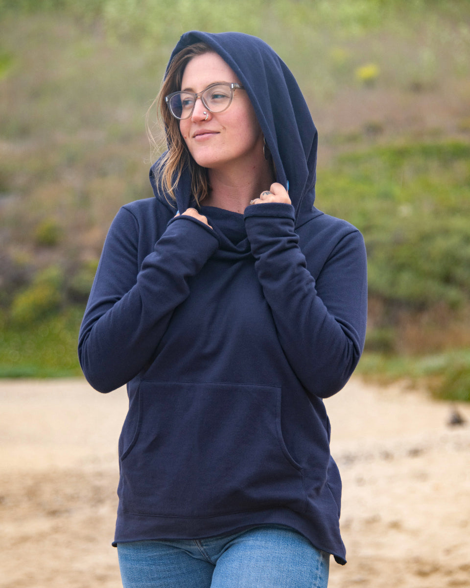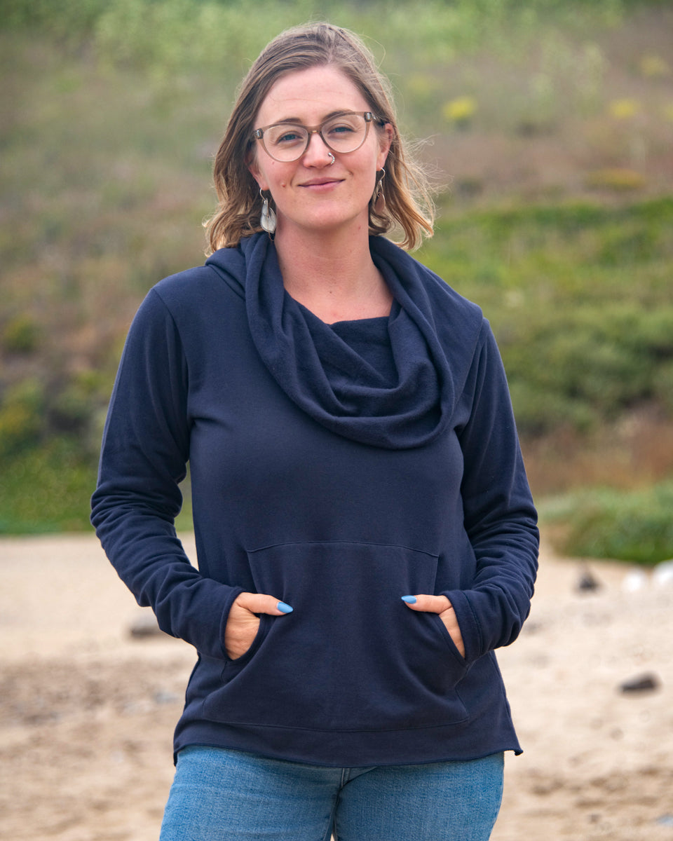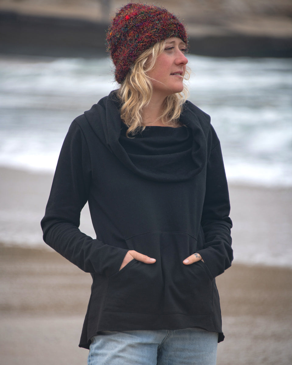 Made from soft French terry cotton, this cozy sweatshirt features a relaxed cowl neck and a front kangaroo pocket.