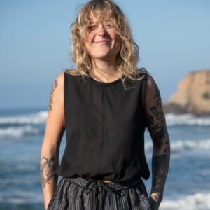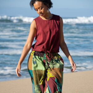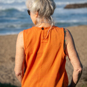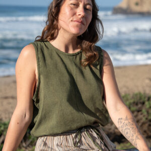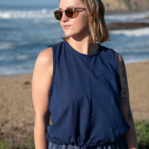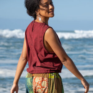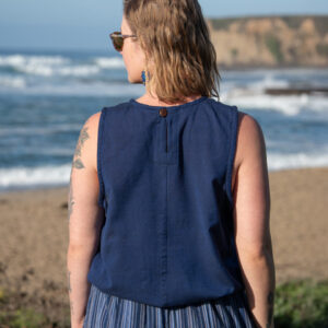 This sleeveless top is crafted from our beloved “Kurta Cotton” and features a relaxed, boxy silhouette. It is designed with a drawstring at the waist and a back button closure for a comfortable, adjustable fit.