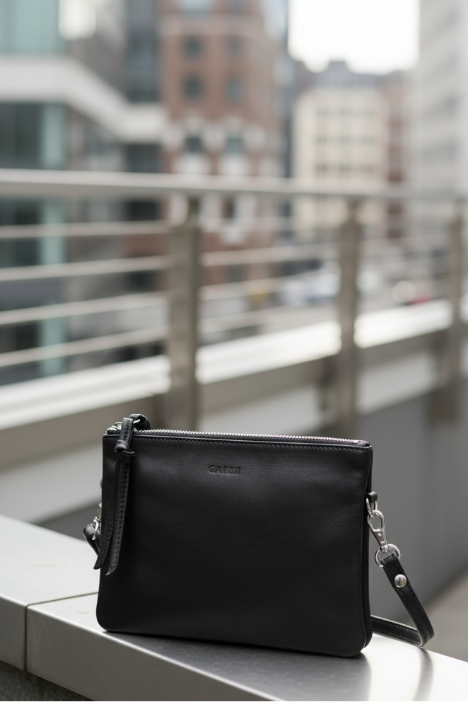 Fulton Soft Leather Double Pouch Crossbody Bag – Black
