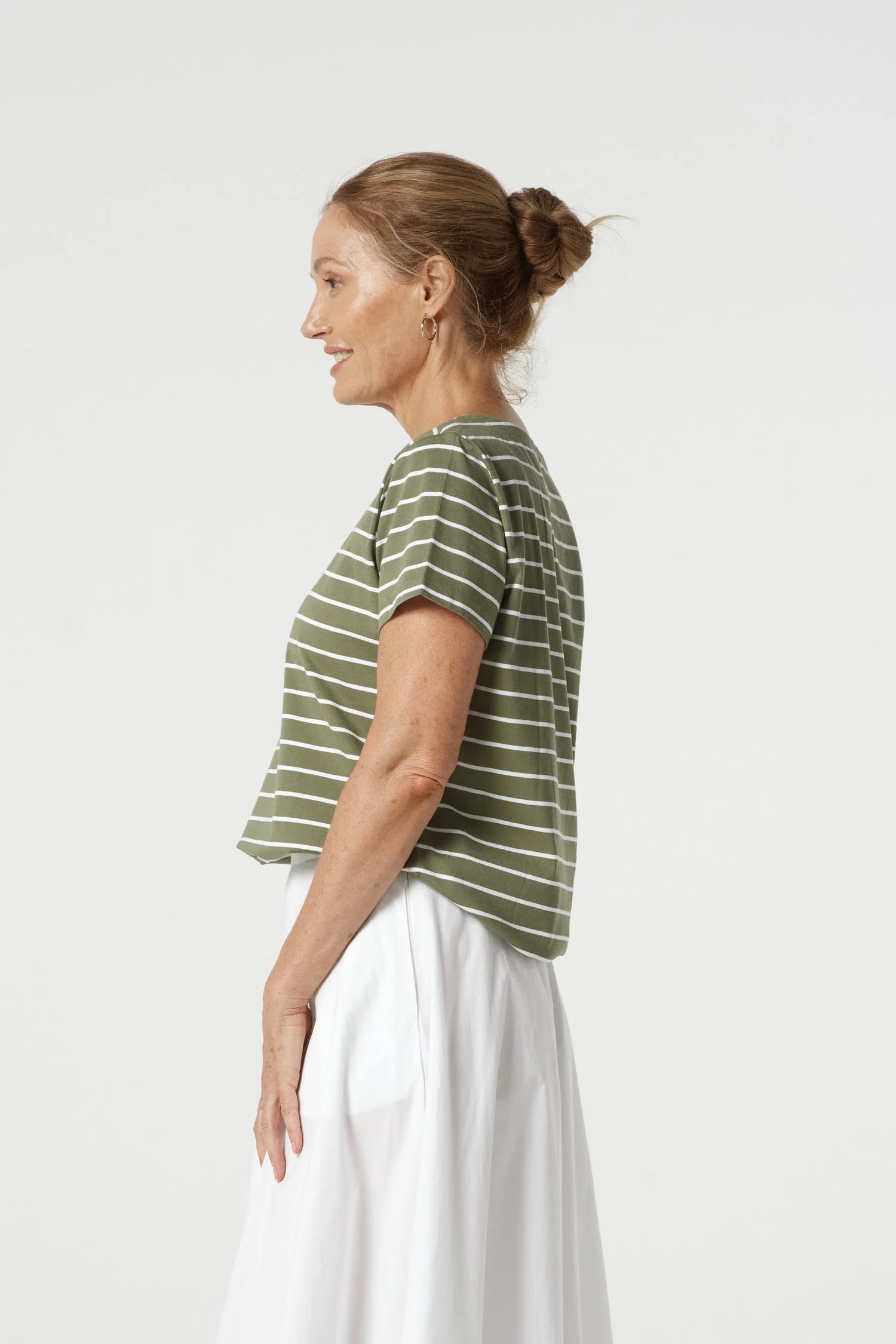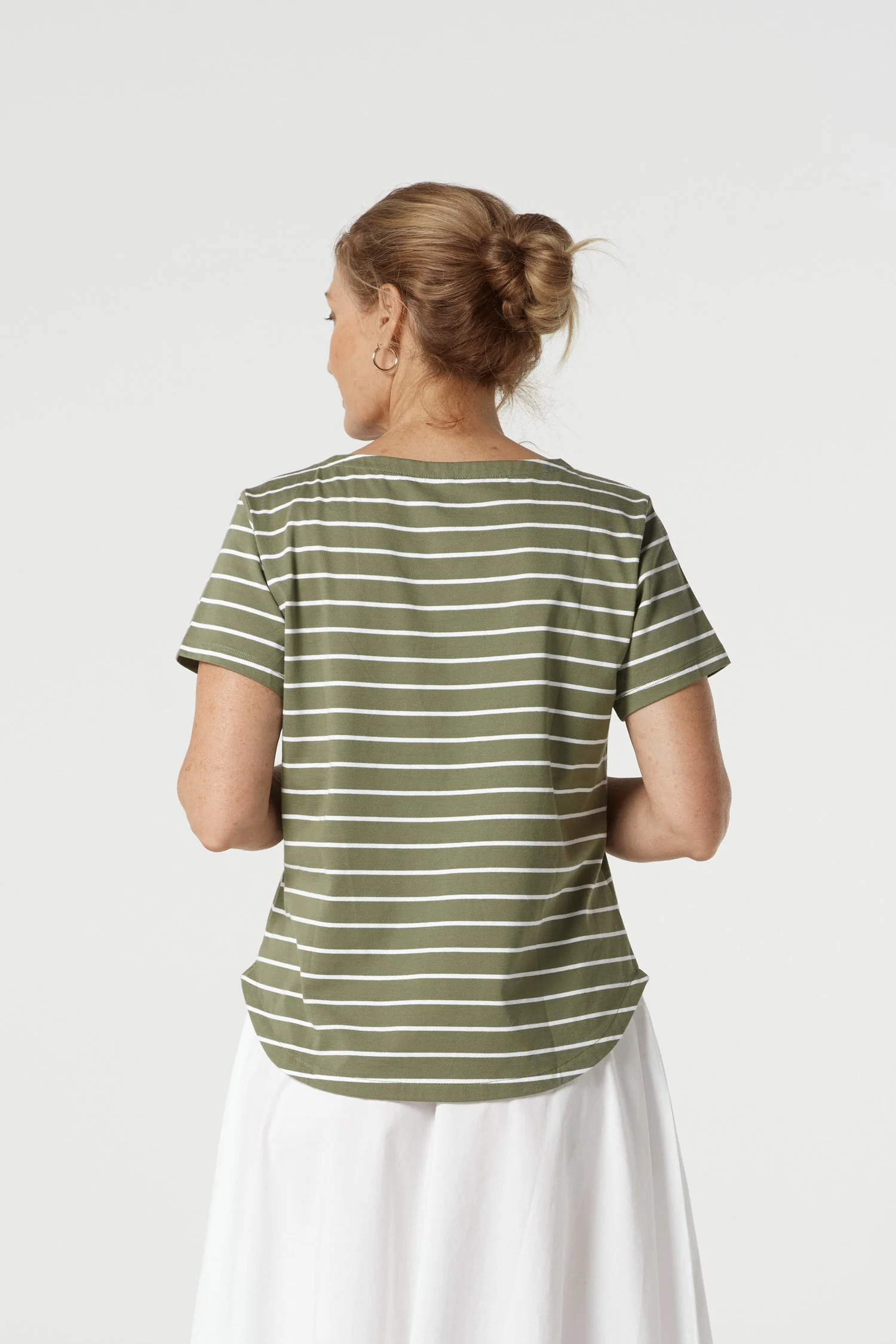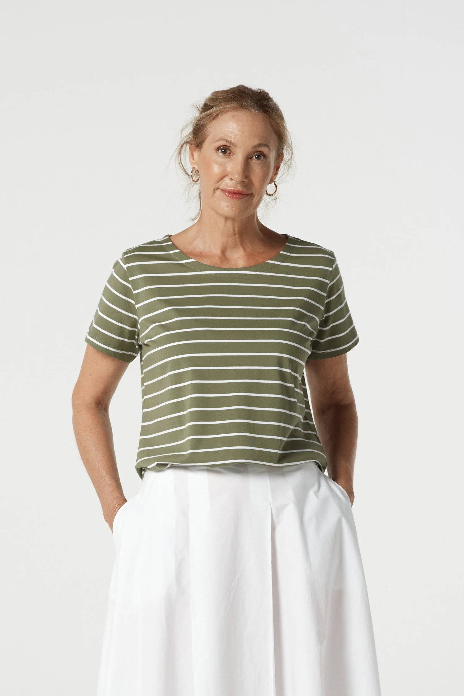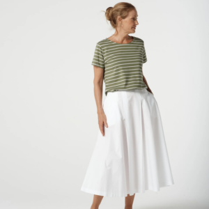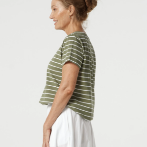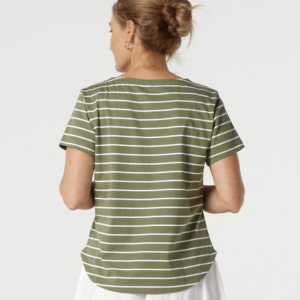 Goondiwindi Cotton – Cotton Crew Neck Striped Tee – White/ Sage