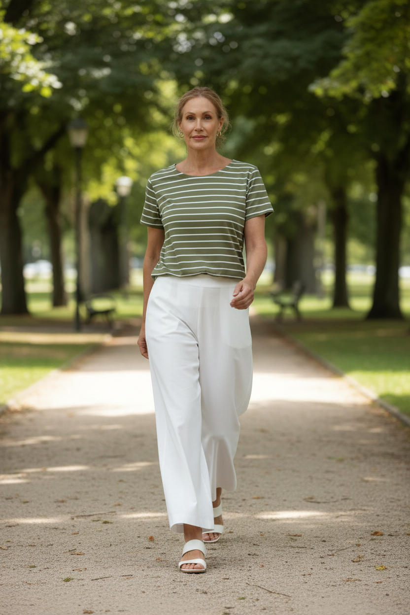 The Goondiwindi Cotton – Cotton Crew Neck Striped Tee in White/Sage is made from 100% pima cotton jersey, offering a soft and breathable feel. Crafted in a premium yarn-dyed stripe, this everyday essential features a classic boat neckline with contrast facing, a curved hem, and contrast hem detailing. Designed in a regular fit, it’s an easy go-to that pairs perfectly with denim, shorts or skirts for a fresh, effortless look.