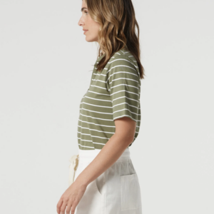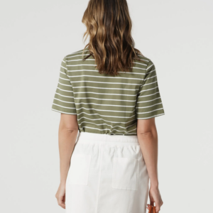 Goondiwindi Cotton – Cotton Stripe Zip Neck Polo – White/ Sage