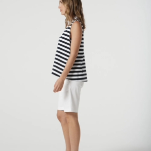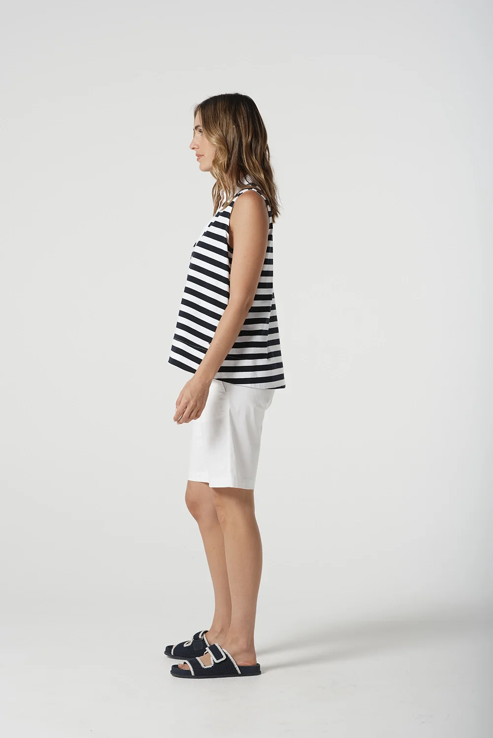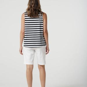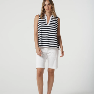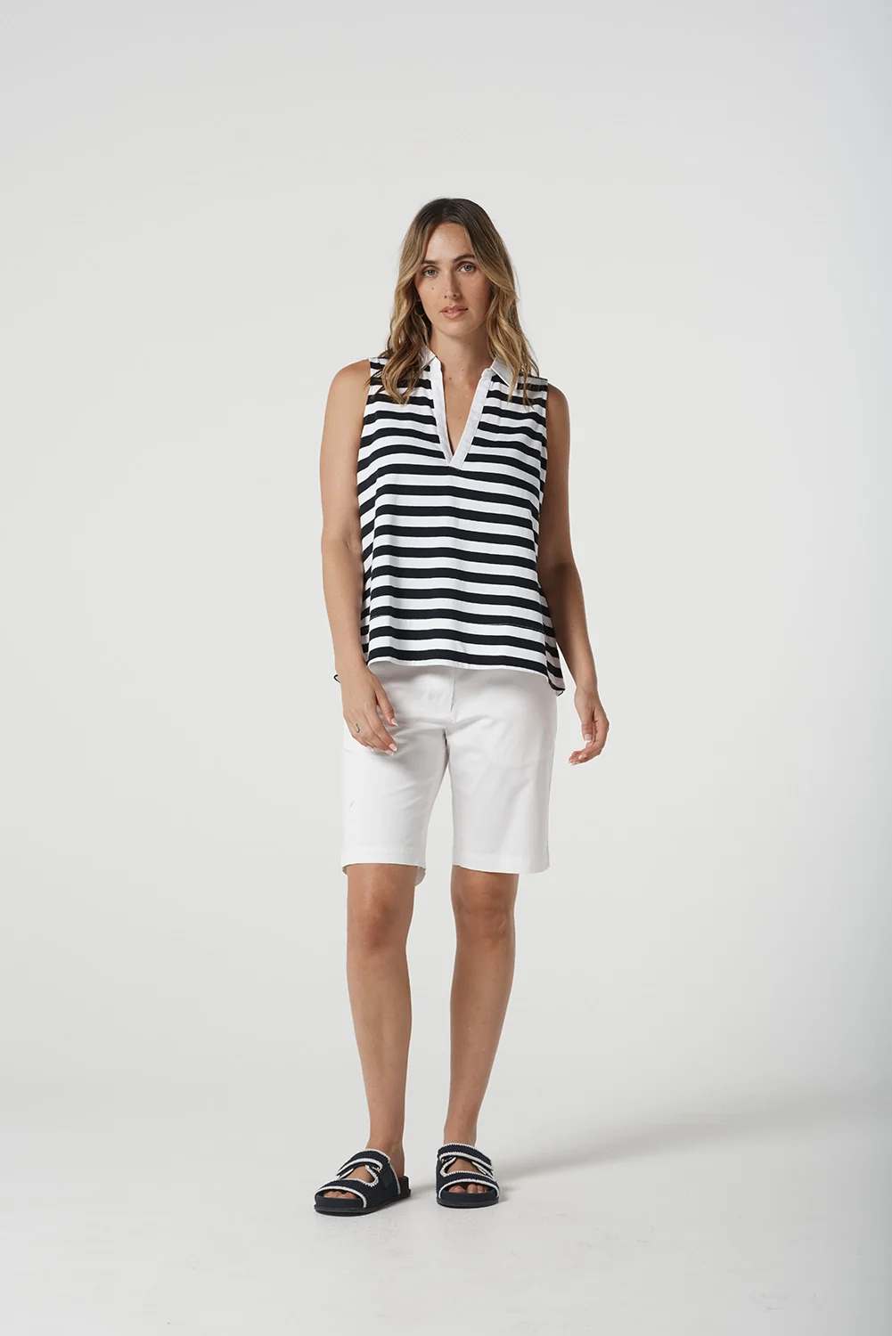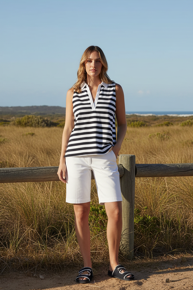 Goondiwindi Cotton – Cotton Striped Sleeveless Polo – White/Navy