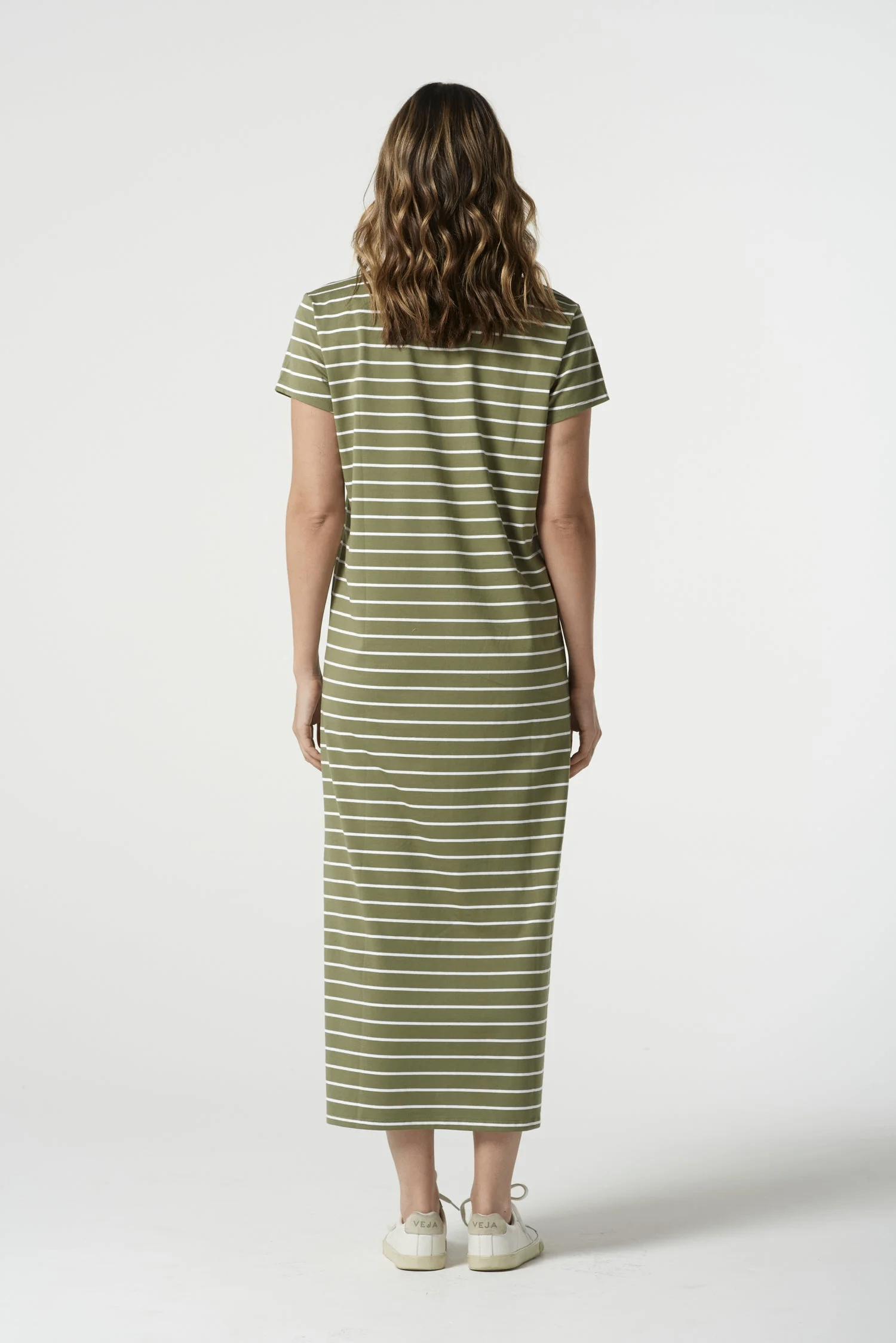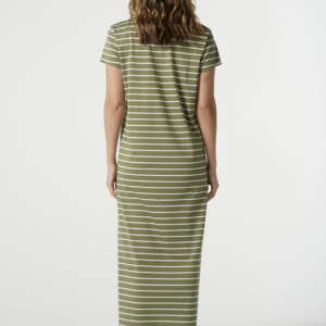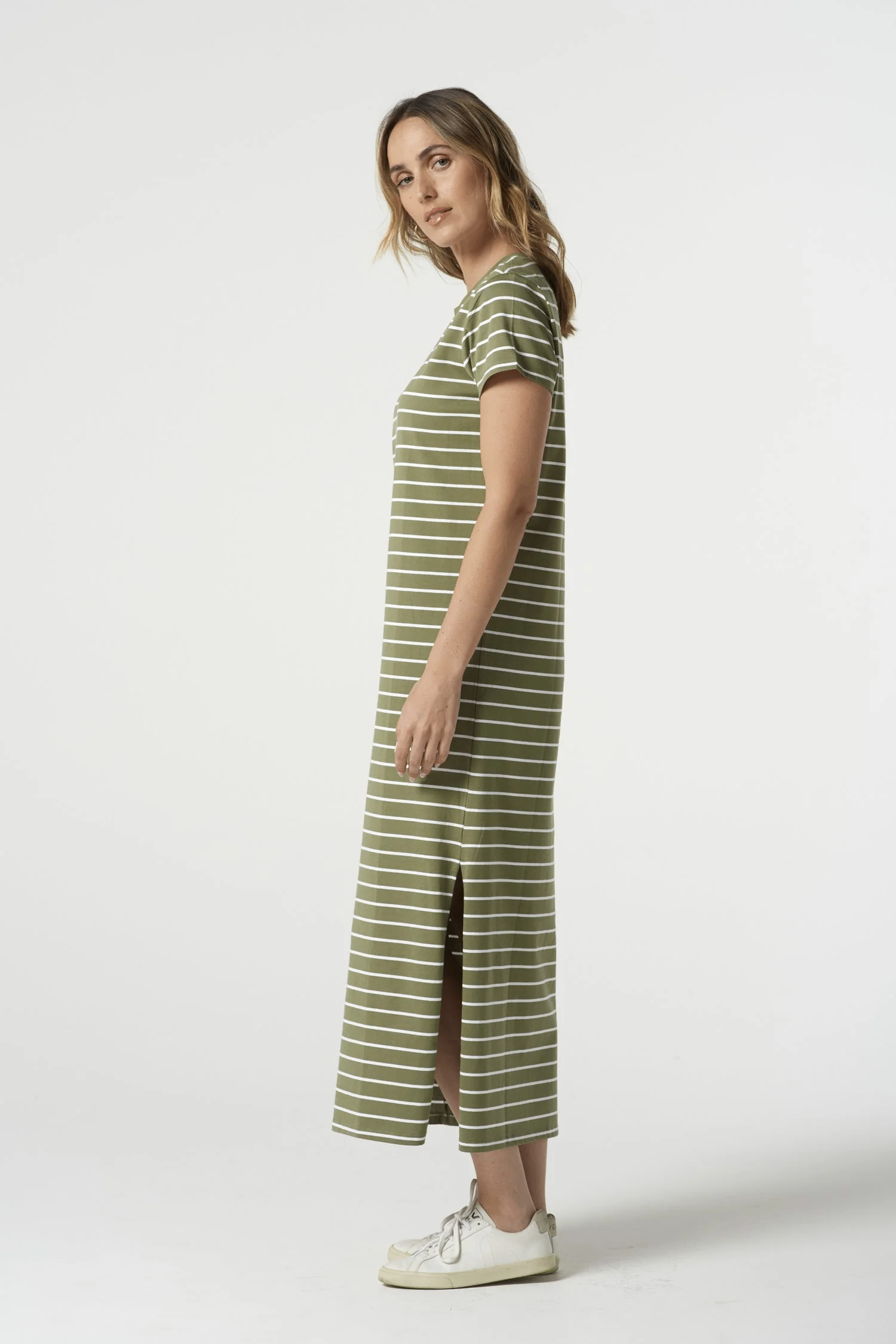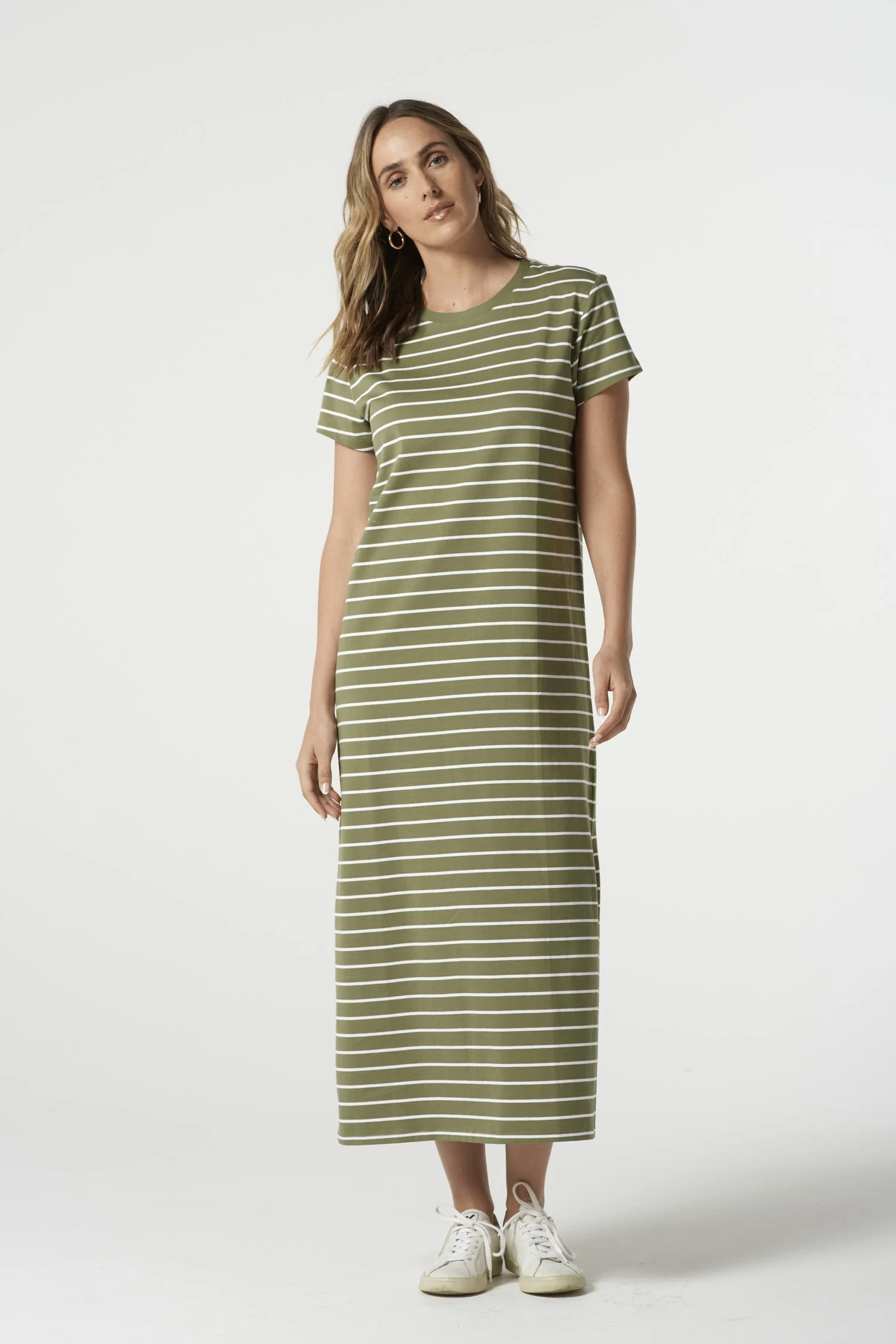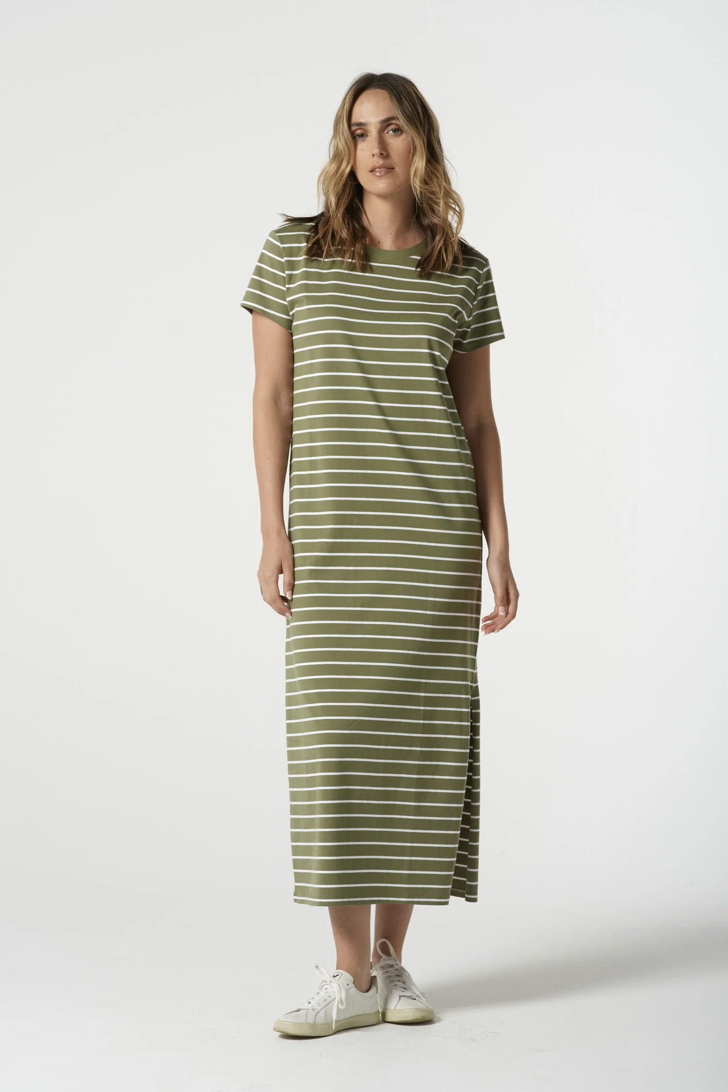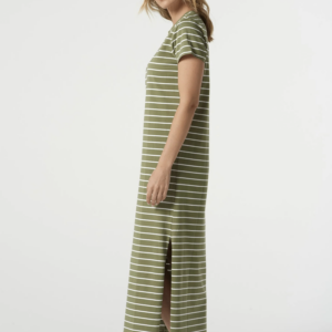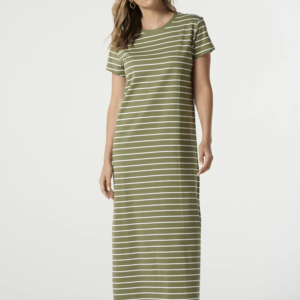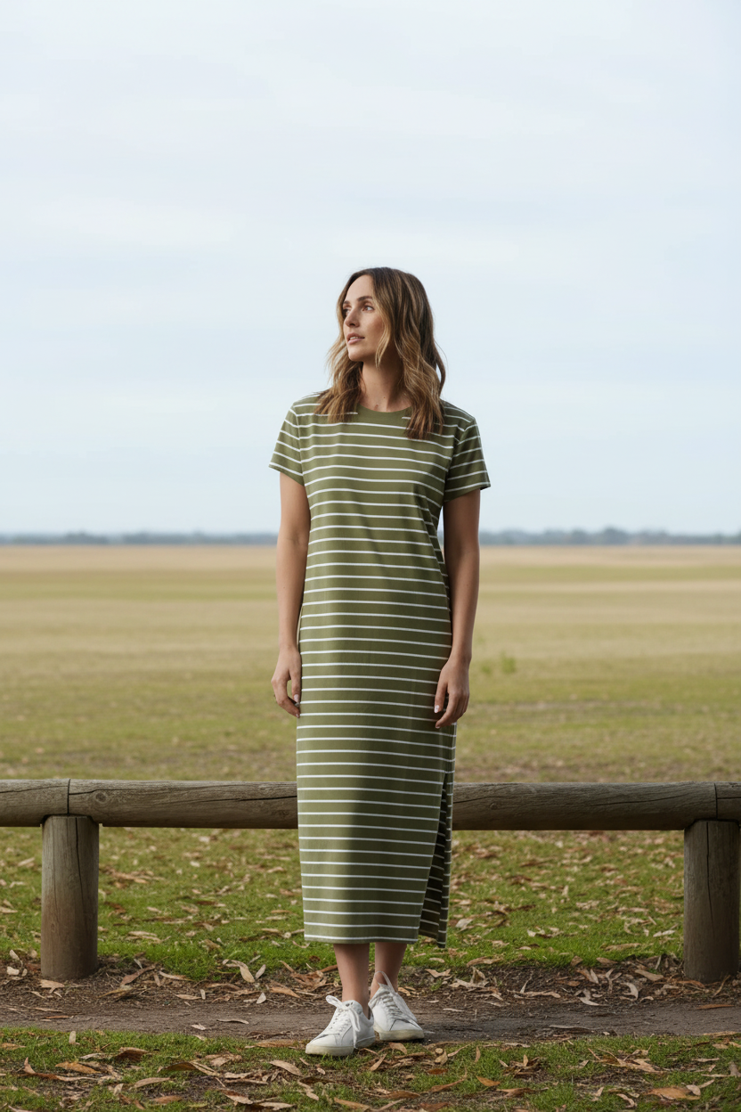 Goondiwindi Cotton – Cotton Striped Tee Dress – White/ Sage