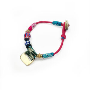 This one-of-a-kind tribal bracelet is thoughtfully handcrafted with care. It features a mix of cotton, brass, wooden, hand-painted ceramic, and vintage African trade beads, making each piece unique. Designed with elements believed to bring peace, health, and protection, it’s a meaningful accessory that adds character and understated elegance to any look.