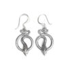 This earring features a carved hanging snake with head inside curled tail
