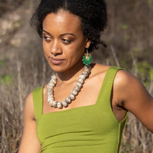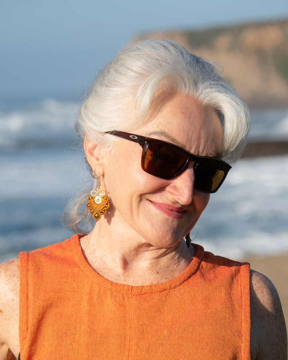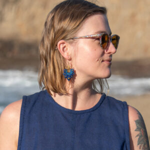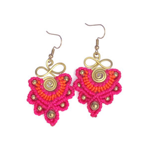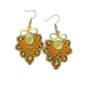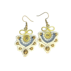 These macrame earrings feature an inifity design with small brass beads. It is made out of waxed cotton and brass.