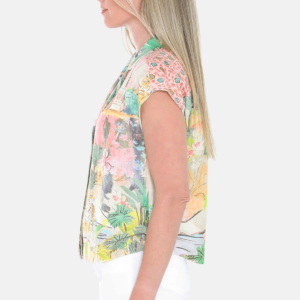 The Jump – Tiger Island Top features a vibrant multi-color design that brings a bold, dynamic look to your wardrobe. Crafted with attention to detail, this top combines striking patterns with comfortable fabric, making it ideal for those who want to stand out while enjoying all-day wearability. Perfect for layering or wearing solo, it provides a versatile piece that enhances any outfit with expert style.