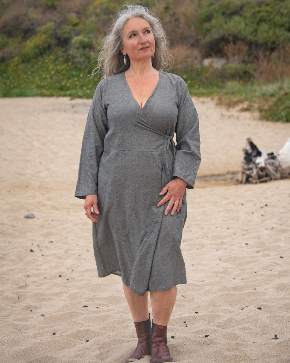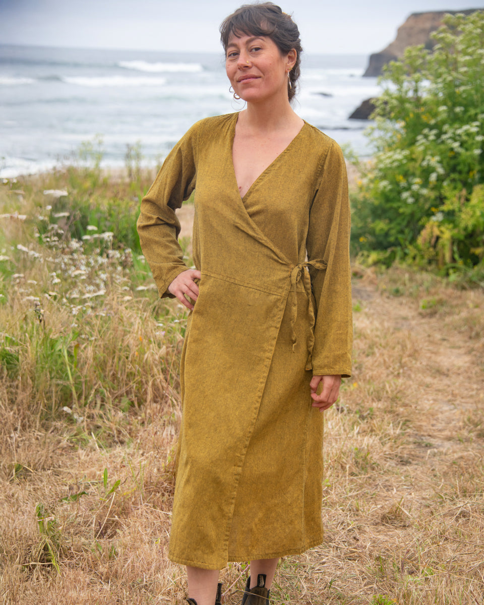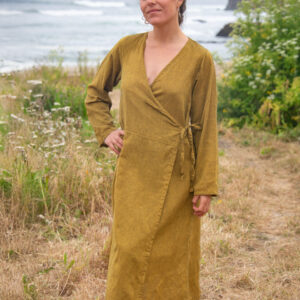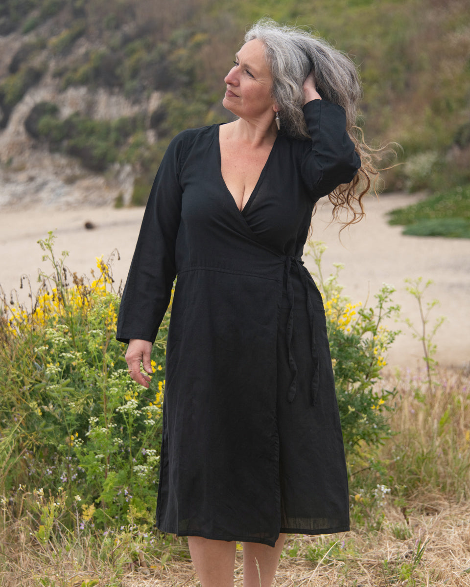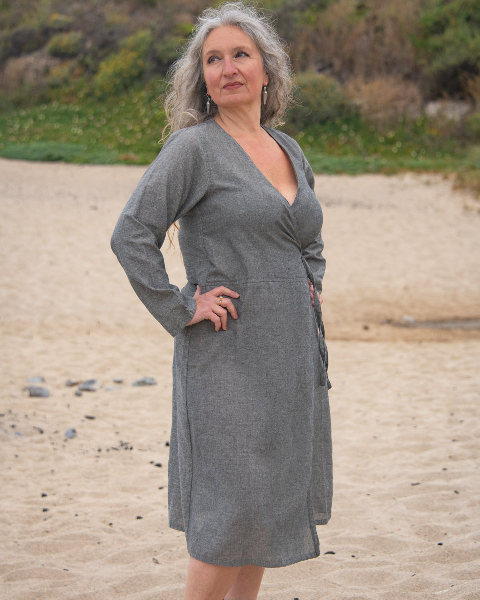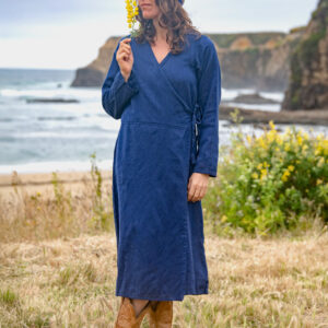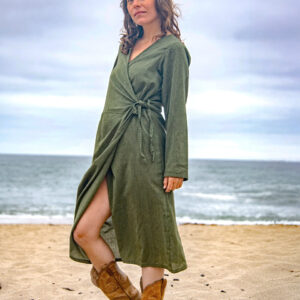 These simple wrap dress is made out of our famous striped ‘Kurta Cotton’. It features long sleeves and a simple wrap style.
