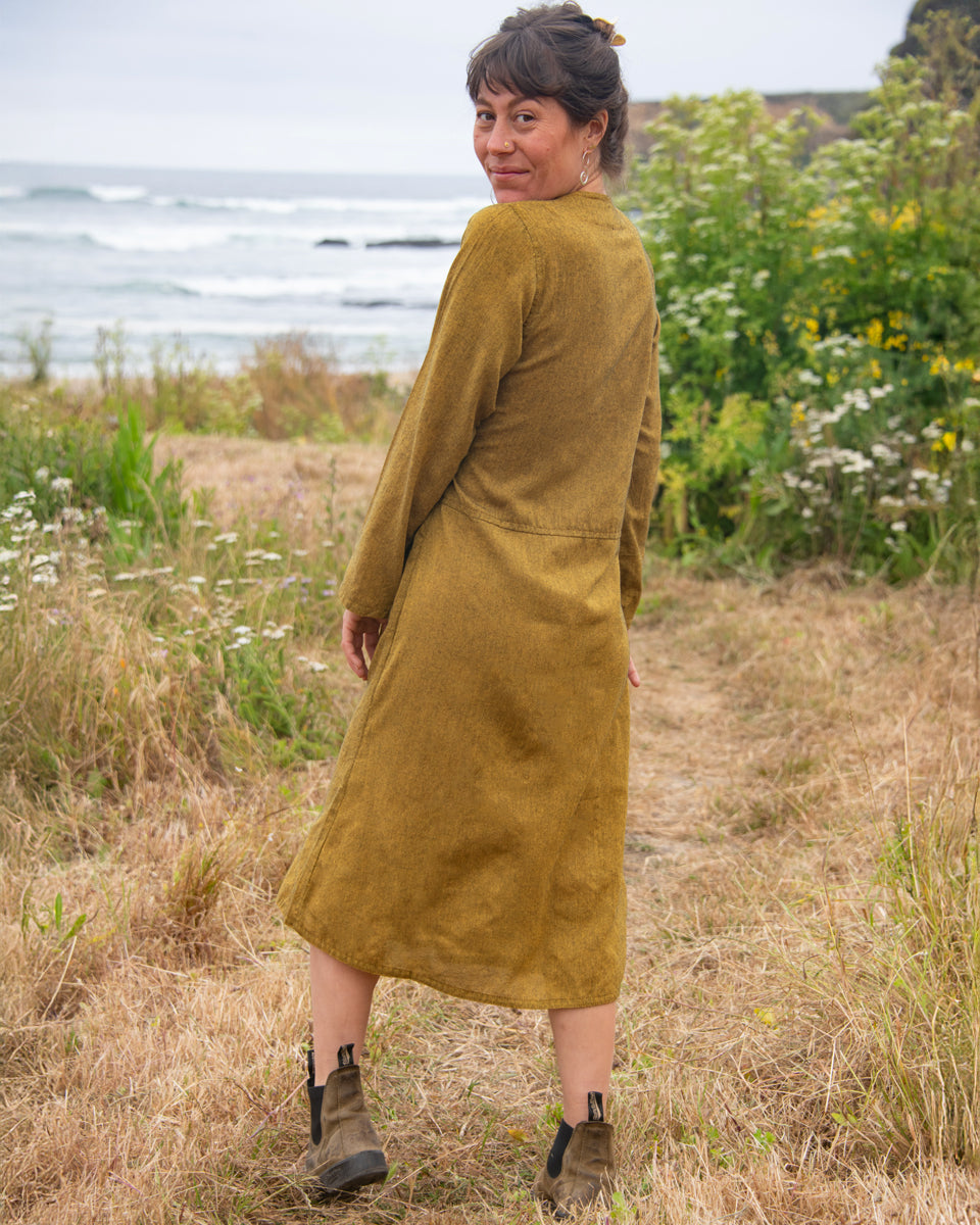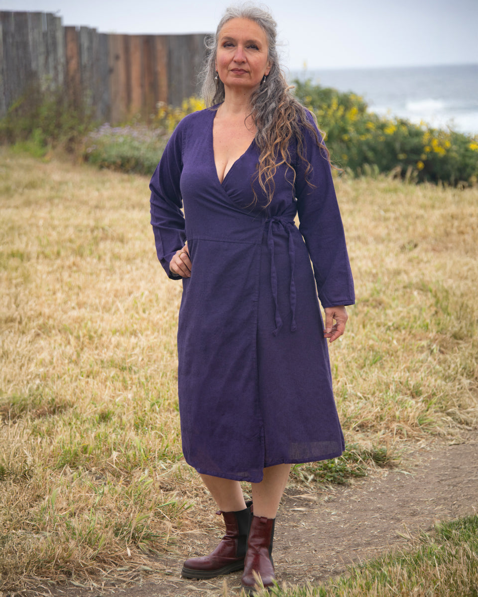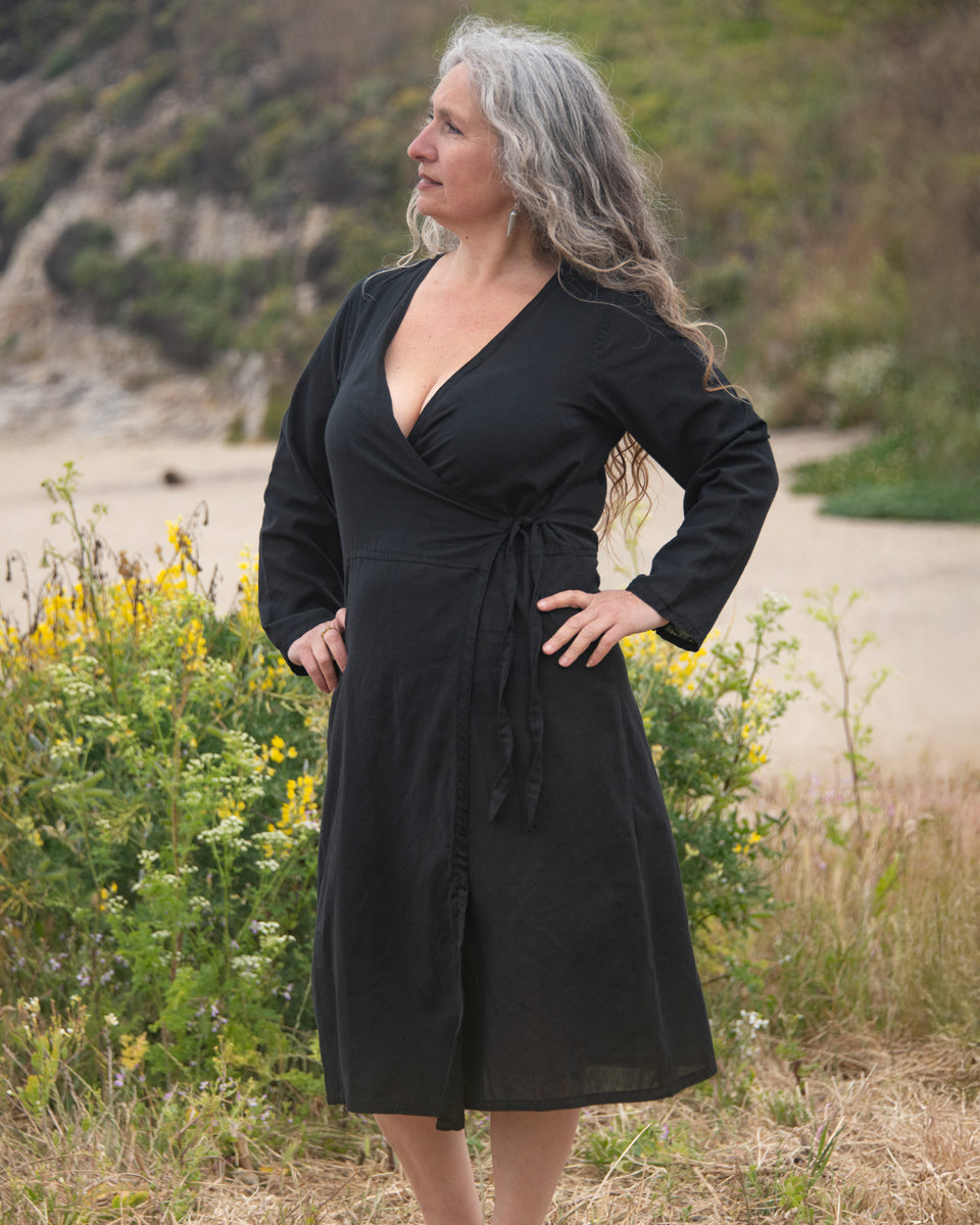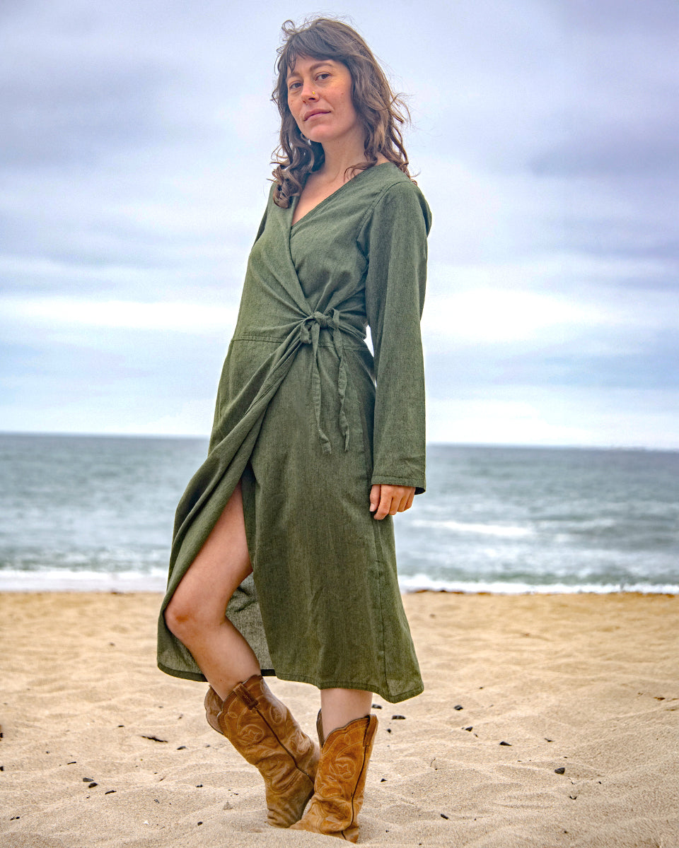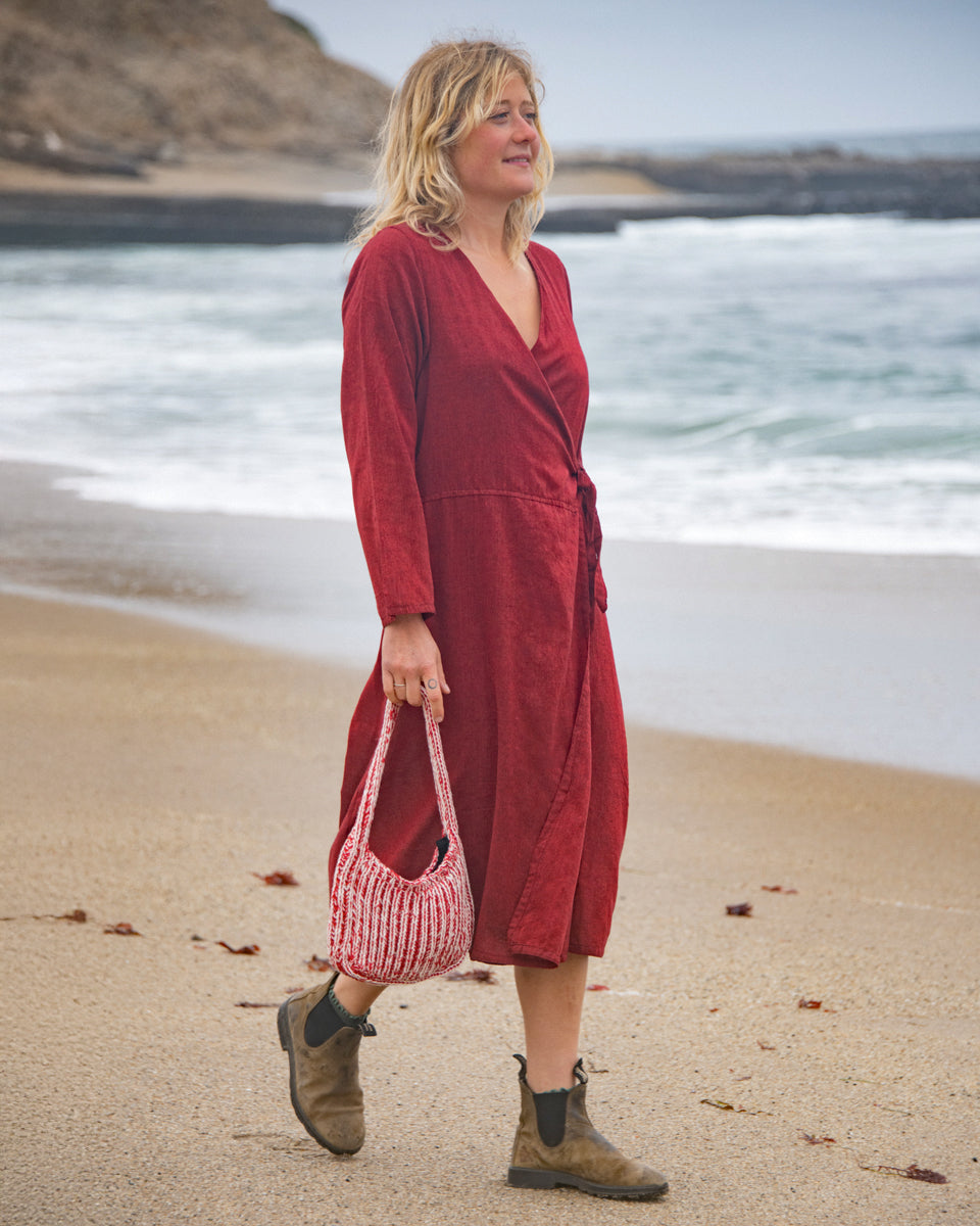 These simple wrap dress is made out of our famous striped ‘Kurta Cotton’. It features long sleeves and a simple wrap style.