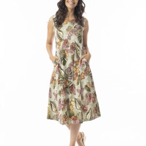 Orientique Lima Olive Pleated Sleeveless Dress