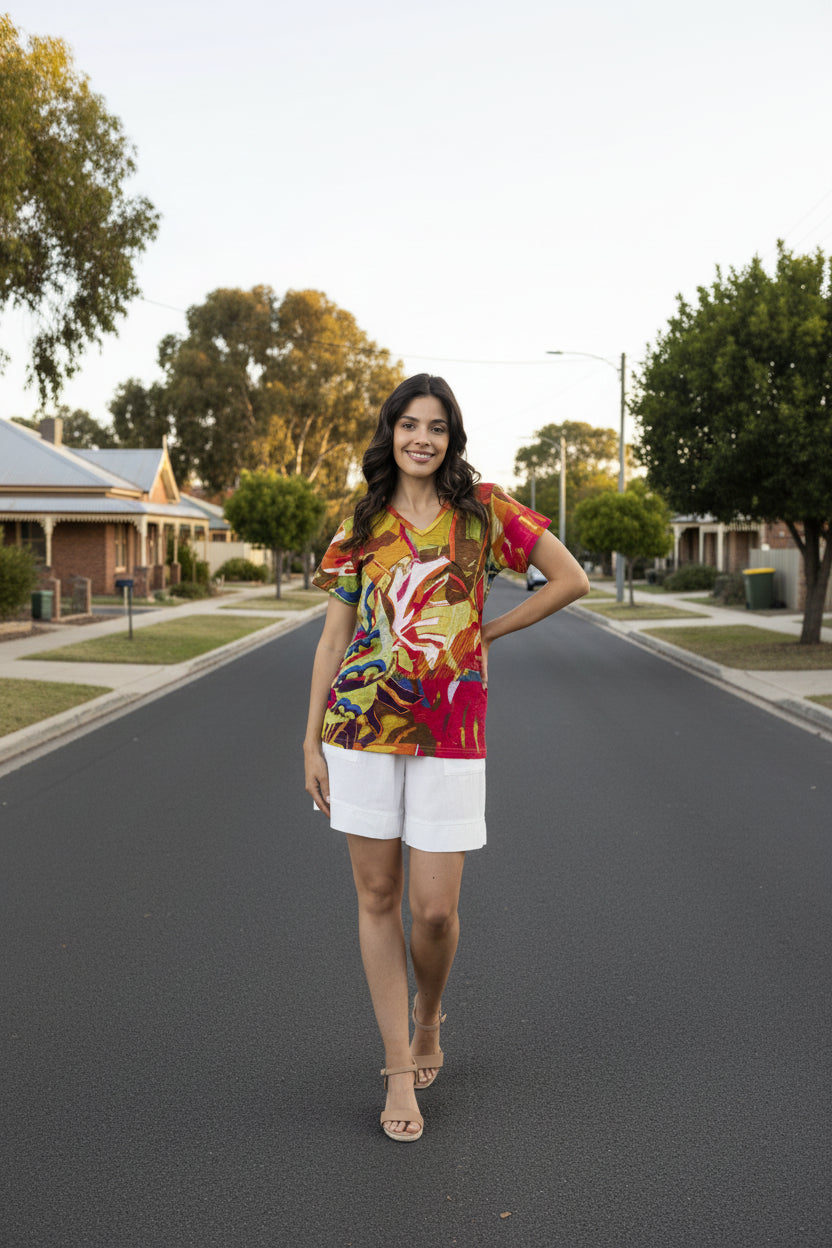 Orientique V-Cut Basic T-Shirt Leaves Red