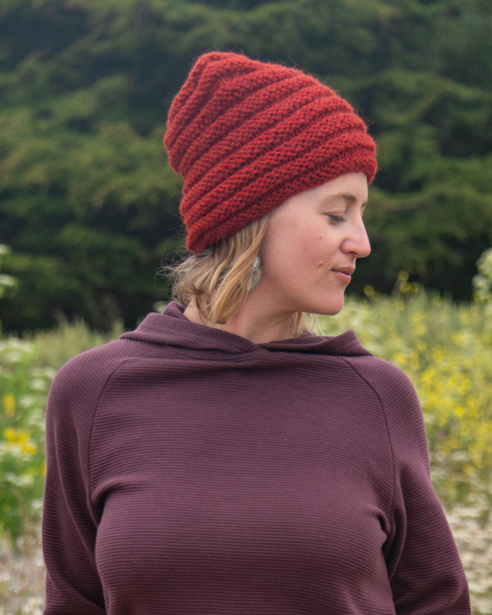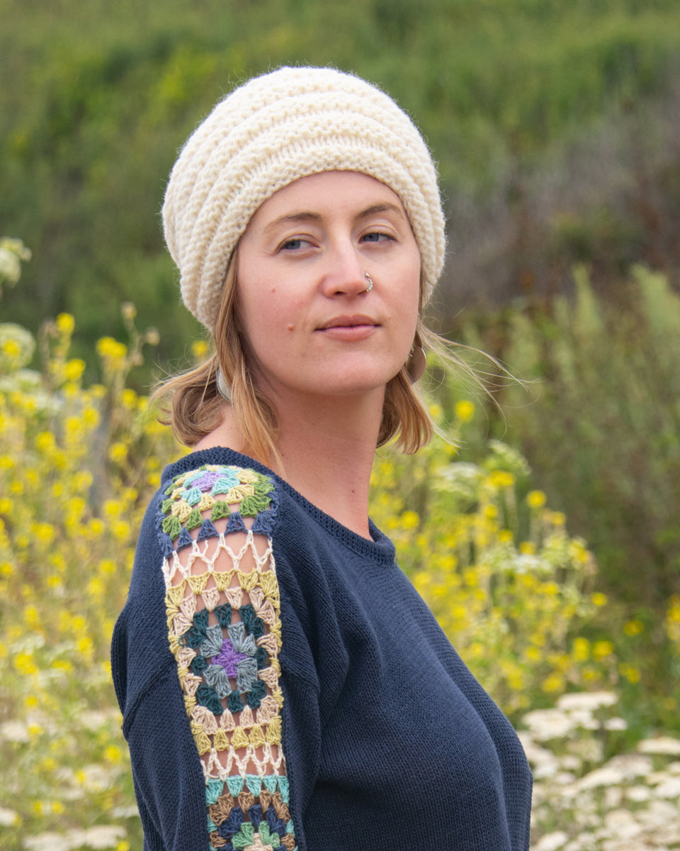 This slightly slouchy beanie feature a ribbed design