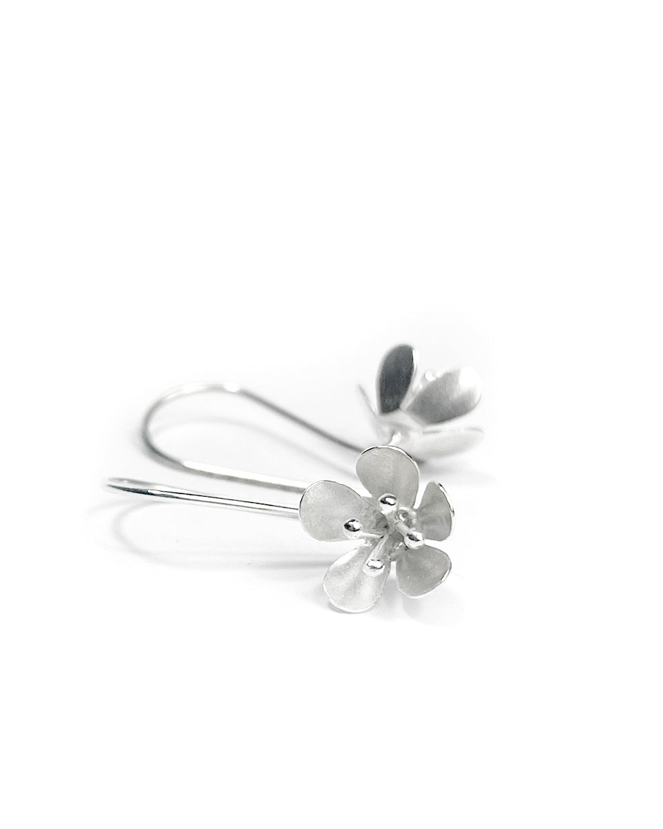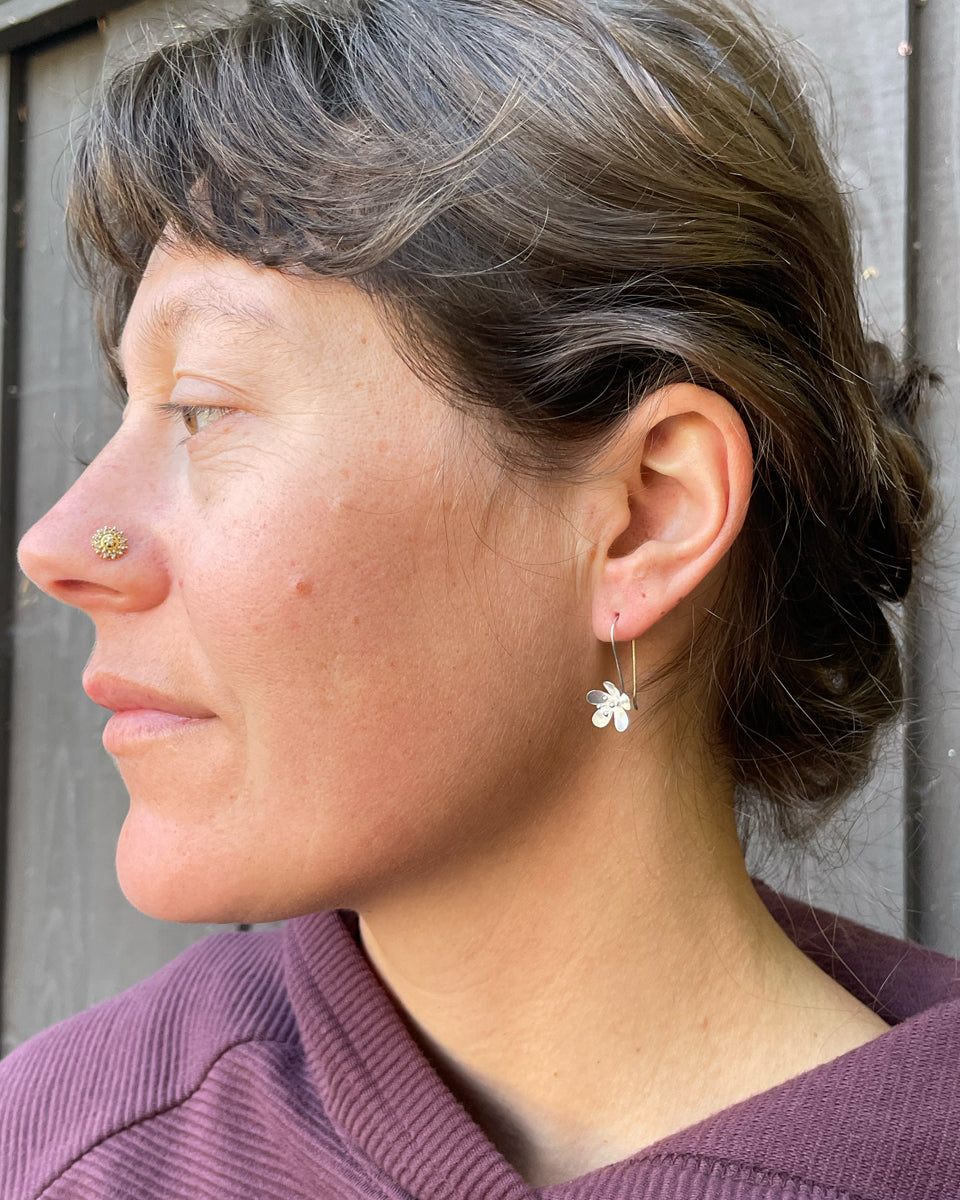 These earrings feature a small hanging flower