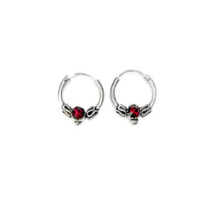 Small hoop earring with crystal in detailed setting, sterling silver, Thailand