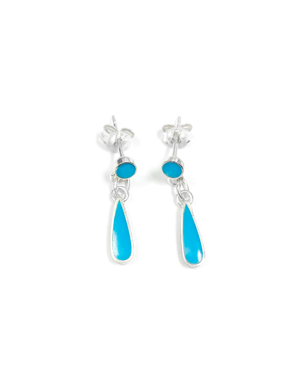 Small earring with stud and hanging tear drop, sterling silver, Thailand