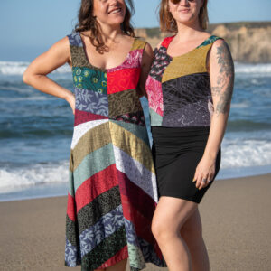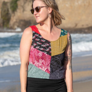 This simple patchwork tank top is crafted from upcycled organic cotton, featuring a unique mix of colors and patterns in every piece. It features a round neckline and wide straps for a comfortable, relaxed fit.