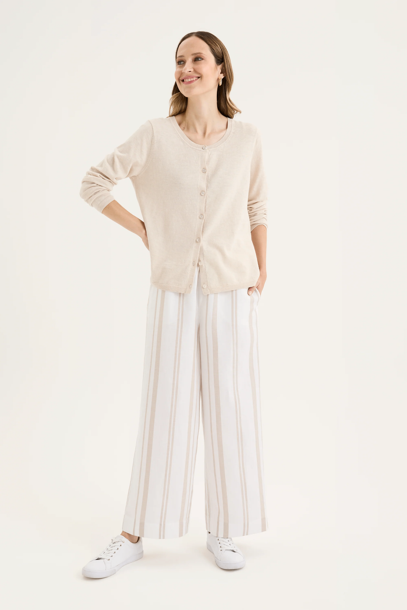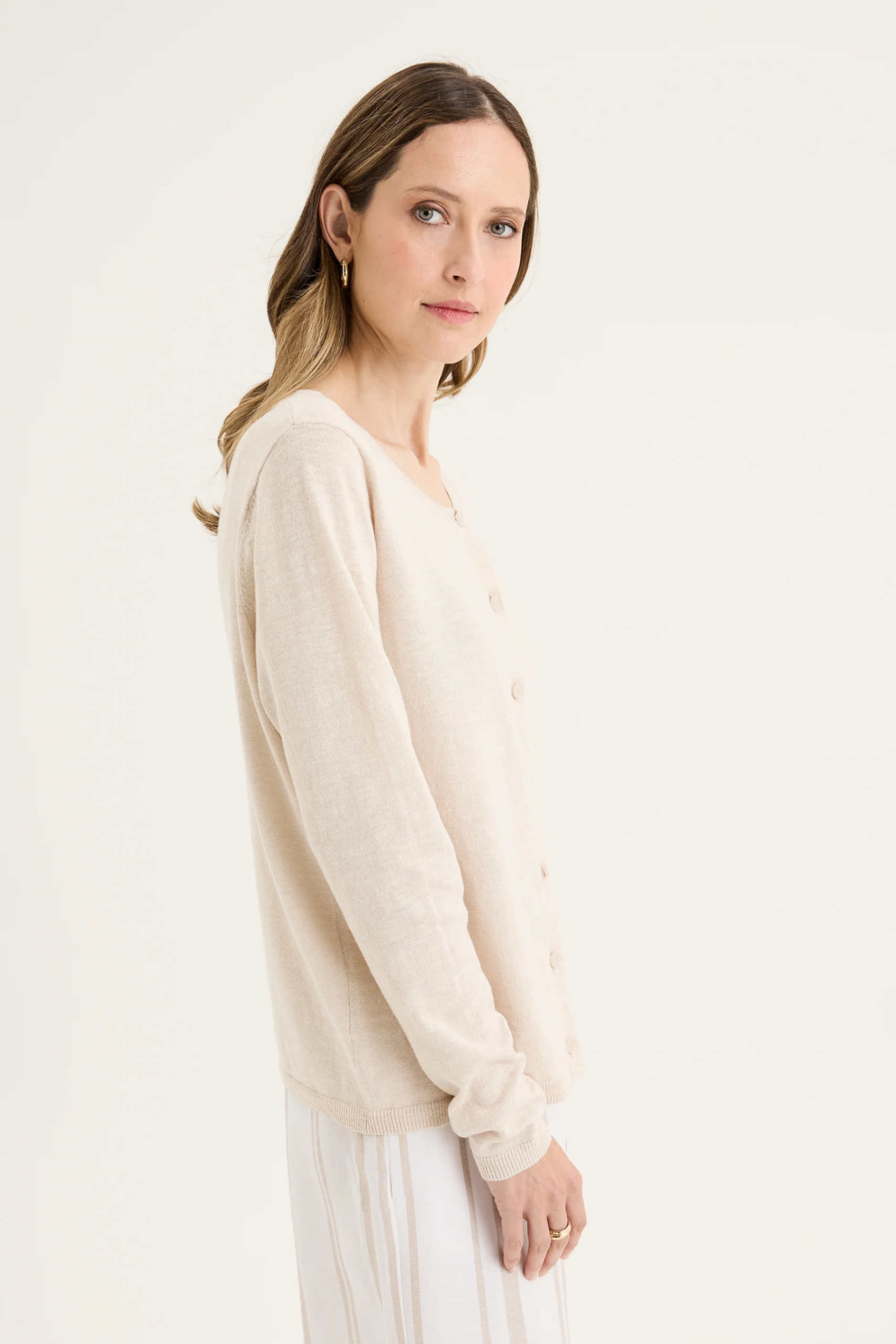 The Yarra Trail Blaze Cardigan in Cashew is a modern classic designed for effortless layering. Made from a breathable cotton-linen blend, it feels soft and natural while offering just the right amount of structure. The round neckline, full-length sleeves, and button-through front keep the look timeless, while the relaxed fit makes it easy to wear over your favourite pieces. Inspired by our bestselling Serene Cardi, this updated version comes in a beautiful range of versatile shades — a go-to layer you’ll love reaching for, season after season.