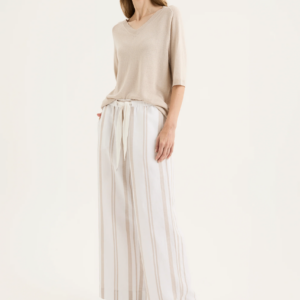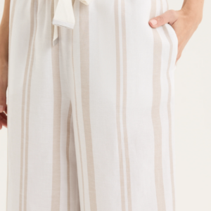 The Yarra Trail Byron Pant in White/Twine is your go-to piece for effortless summer style. Made from airy linen with subtle cream yarn-dyed stripes, it delivers both comfort and timeless appeal. The cropped 7/8 wide-leg silhouette offers an easy, breezy fit, while the elastic waistband with a herringbone tie ensures comfort and a touch of detail. Finished with practical inseam pockets, this pant is as functional as it is flattering. Pair it with a simple tee for relaxed days or team it with the matching Byron Shirt for a polished, coordinated look.